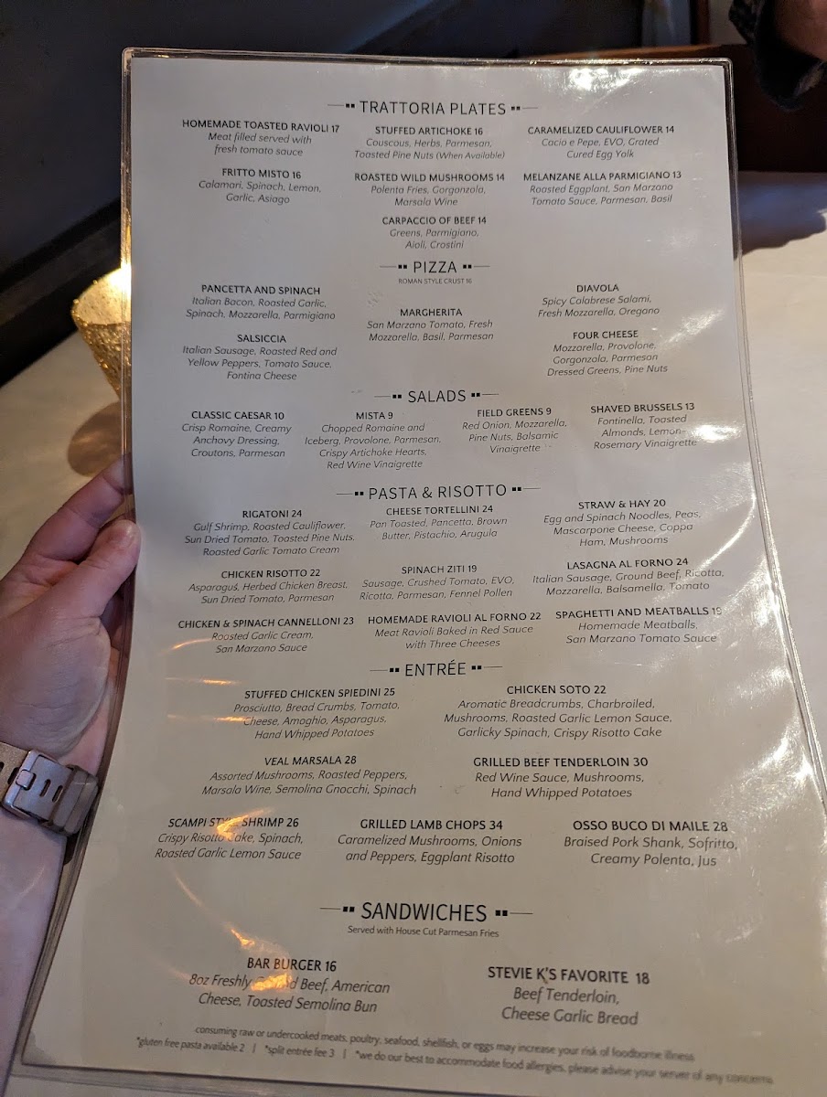 Guests will find options that evoke a sense of homemade warmth, from rich risottos featuring lobster or shrimp to simple yet satisfying sides like roasted vegetables or shaved Brussels sprouts. The approachable wine and cocktail list, including refreshing choices like basil lemonade and Italian martinis, complements the food without overshadowing it.